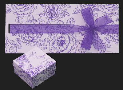 | Paris Adamascado em Papel Relux Violeta 240g com impressão em epóxi verde Jade e Laço em fita de cetim roxo vendido separadamente. |